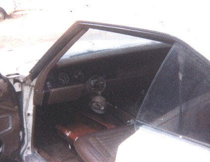 The story of how I got the car is rather amazing. A friend at school had gotten the car from his uncle. It had been sitting in a field near Sacramento, CA with the doors and front sheet metal removed for some time. Cats had lived in it, and mice too. Every body panel had at least some damage, and some was severe. The interior had been vandalized by someone with a fondness for orange spray paint. Each instrument gauge had its face painted orange and its needle broken off (the plastic lenses were broken too). The car had a non-running 383 2bbl, a 727 transmission, a 7 1/4" rear end, no drive-line, an extra set of doors, and miscellaneous parts in the trunk.