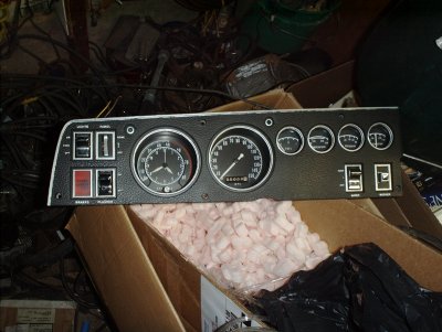 In rebuilding my instrument panel, I took all five or so instrument clusters I have accumulated over the years, set up a 5-volt tester, and selected the gauges with the best function. Then I used a kit from Performance Car Graphics to resurface the gauges once I had repainted them a flat black color. I do not have an unbroken 1970 cluster bezel, so I used one from a '69. Thus the panel I currently plan to put in my car has a dash-mounted hazard lights switch; if I find a 1970 bezel, I will install it and delete the hazard switch as would be proper. The bezel was repainted and relettered by hand, and detailing took me about a day and a half. I think the results will be very nice for my weekend cruiser of the future.